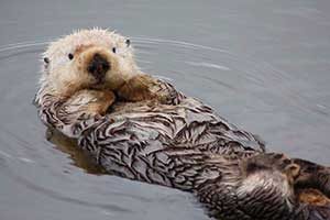 Unlike other marine mammals, sea otters lack blubber. They keep warm from the chilly surrounding water with a high metabolism, dense fur, and by having an insulating layer of air between their skin and the water.