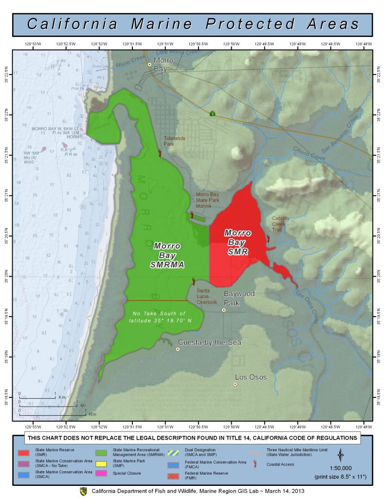 This area includes the area below mean high tide line within Morro Bay east of longitude 120° 50.34′ W.