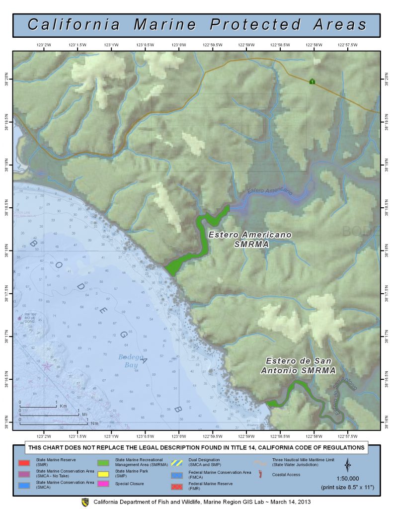 This area includes the waters below the mean high tide line within Estero Americano westward of longitude 122° 59.25′ W.
