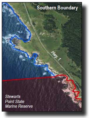 This area is bounded by the mean high tide line and straight lines connecting the following points in the order listed: