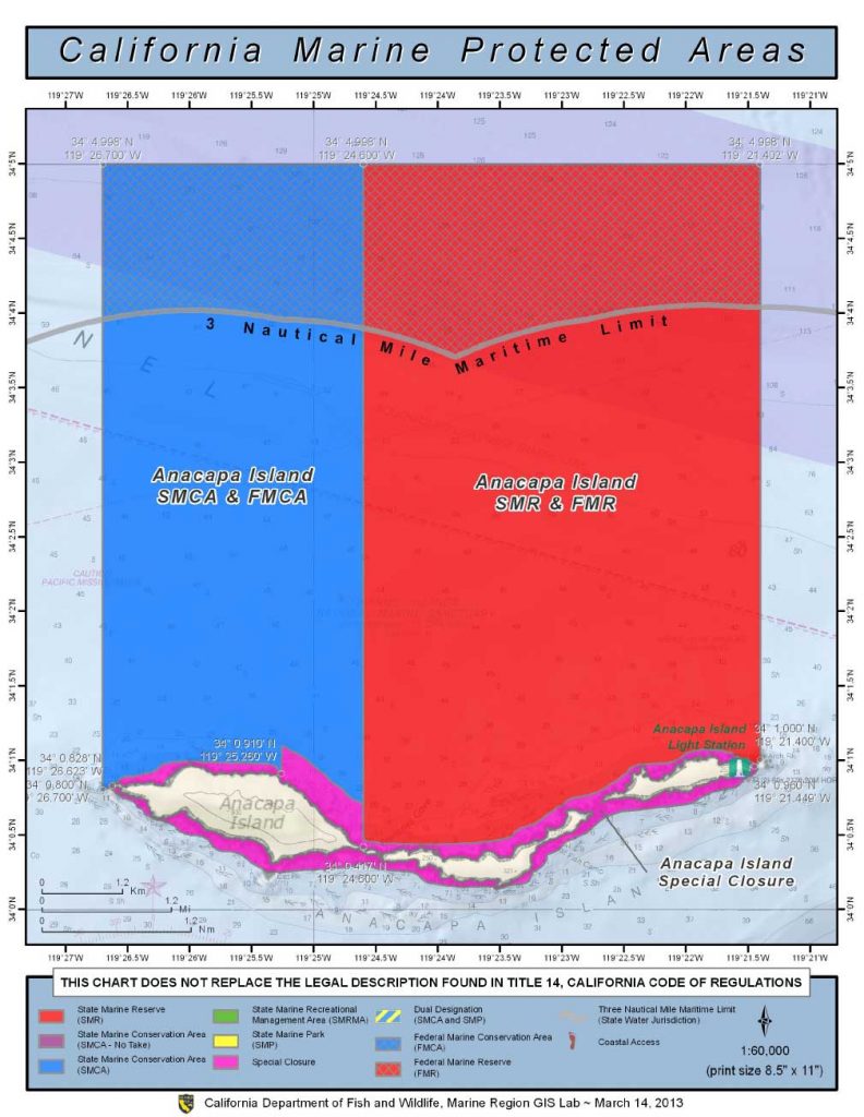 No net or trap may be used in waters less than 20 ft. deep off the Anacapa Islands, commonly referred to as Anacapa Island.