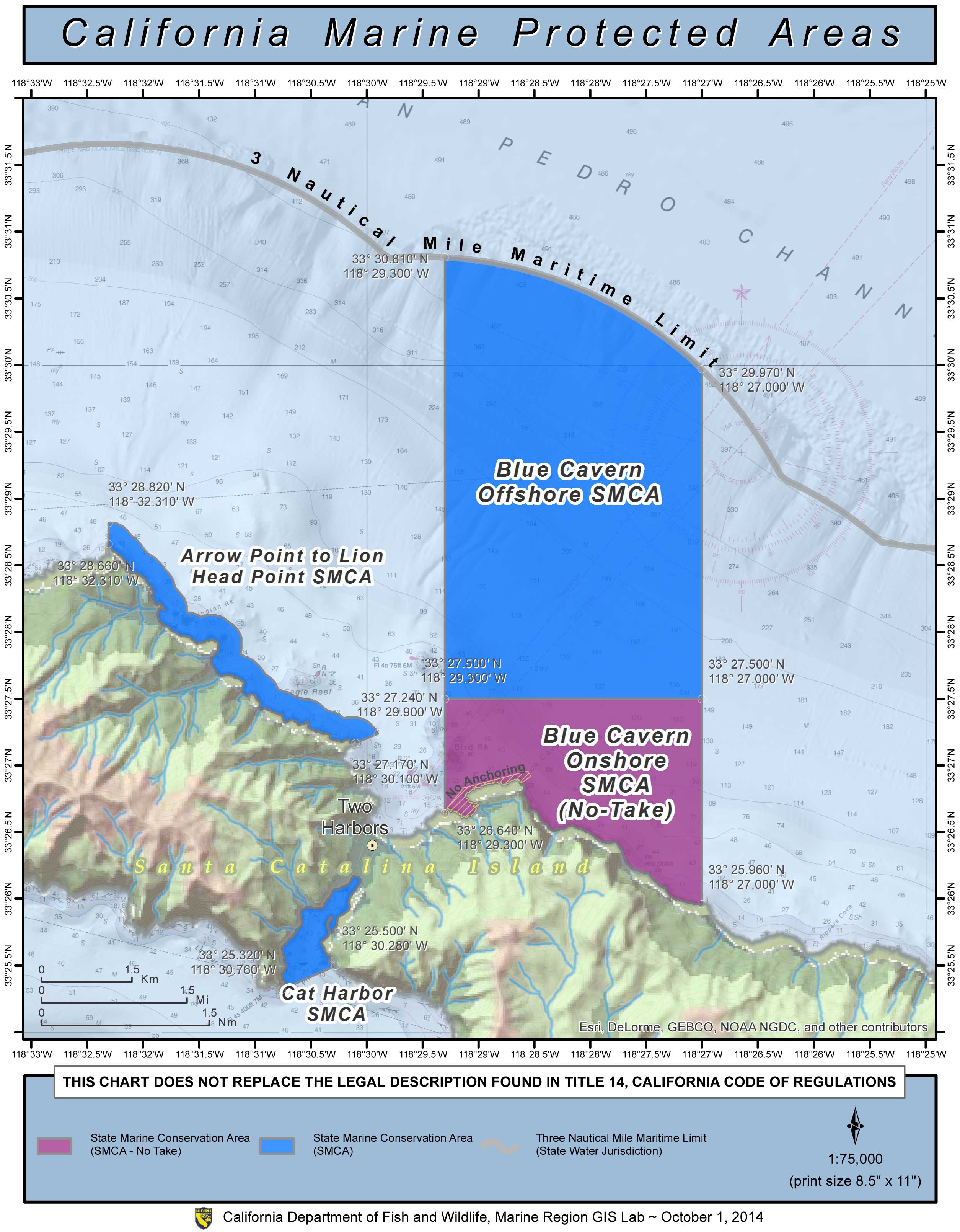 - Except as pursuant to Federal law, emergency caused by hazardous weather, or as provided in this section, it is unlawful to anchor or moor a vessel in the Blue Cavern State Marine Conservation Area. The director of the Blue Cavern State Marine Conservation Area, or any person that the director of the conservation area has authorized may anchor or moor a vessel or take, for scientific purposes, any fish or specimen of marine life under the conditions prescribed in a scientific collecting permit issued by the department.