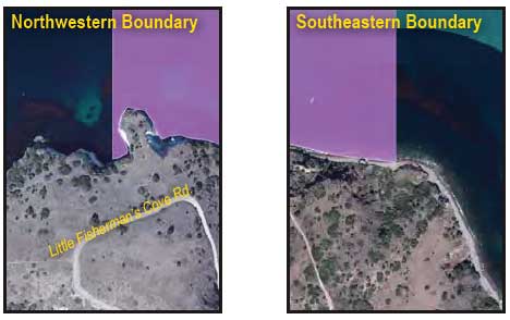 This area is bounded by the mean high tide line and straight lines connecting the following points in the order listed:
