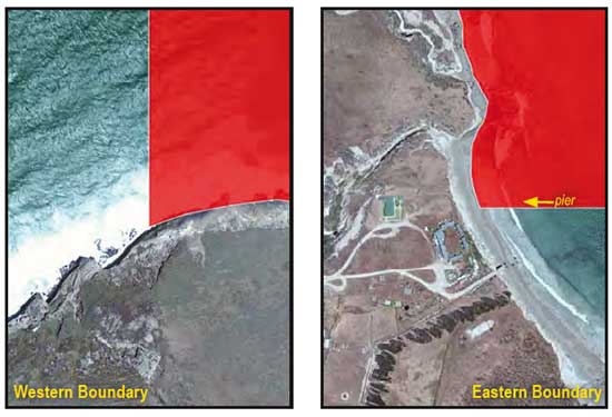 This area is bounded by the mean high tide line and straight lines connecting the following points in the order listed: