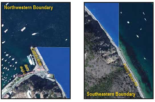 This area is bounded by the mean high tide line and straight lines connecting the following points in the order listed: