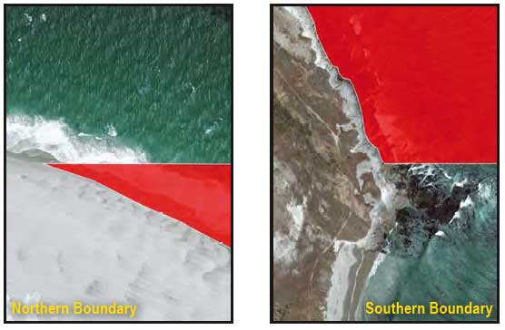 This area is bounded by the mean high tide line and straight lines connecting the following points in the order listed: