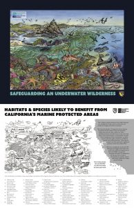 This poster was created by the California Department of Fish and Wildlife showcasing species and habitats that are likely to benefit from California’s Marine Protected Areas.