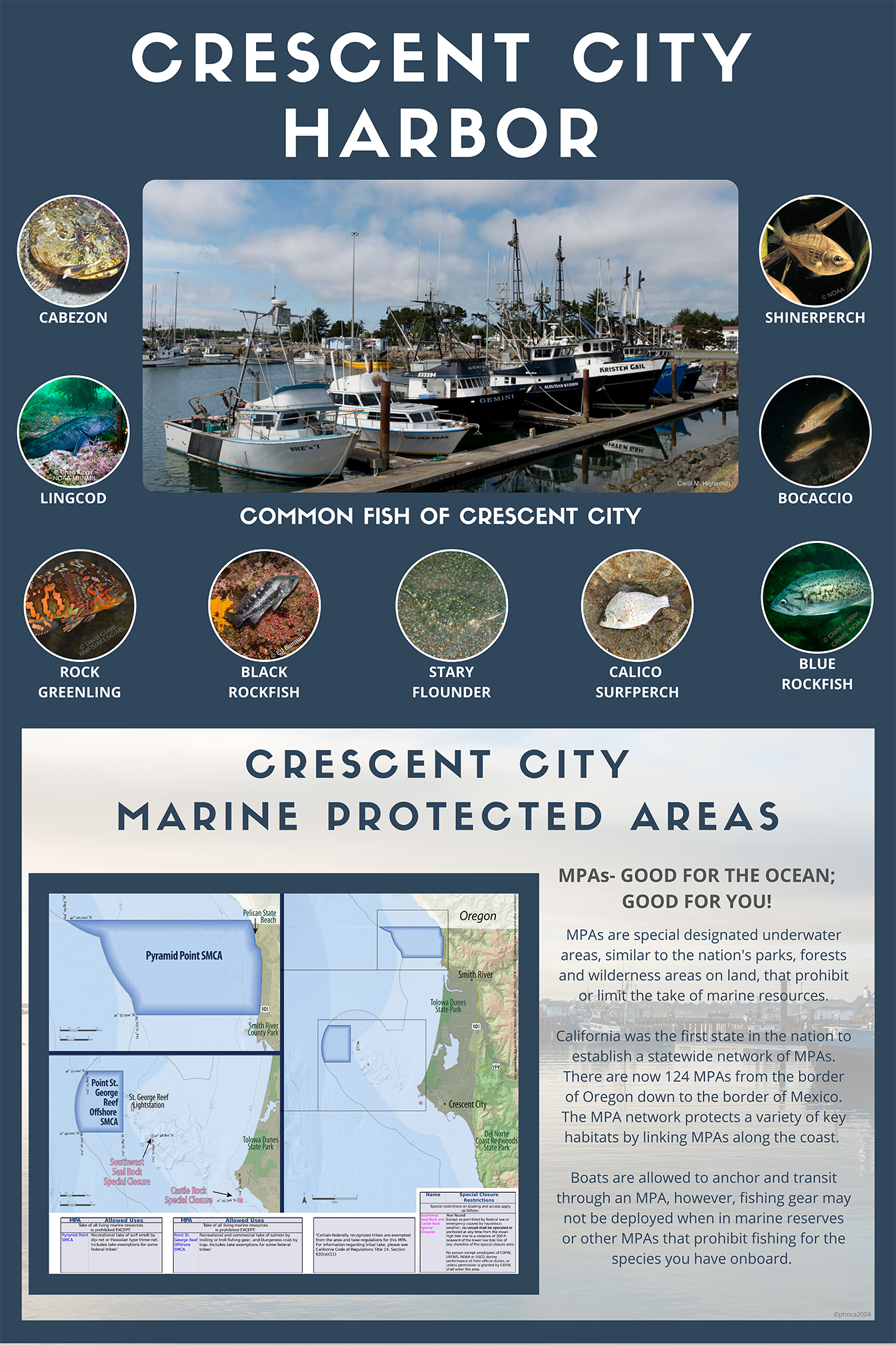 This poster was developed for use at Crescent City Harbor and shows common fish species of the area.