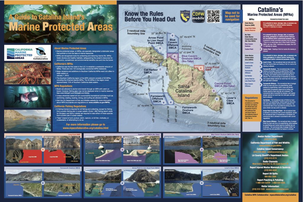 Poster created by the Catalina MPA Collaborative for display at Catalina Island’s businesses, non-profit organizations, and public agencies to help educate residents and visitors about the region’s MPAs.