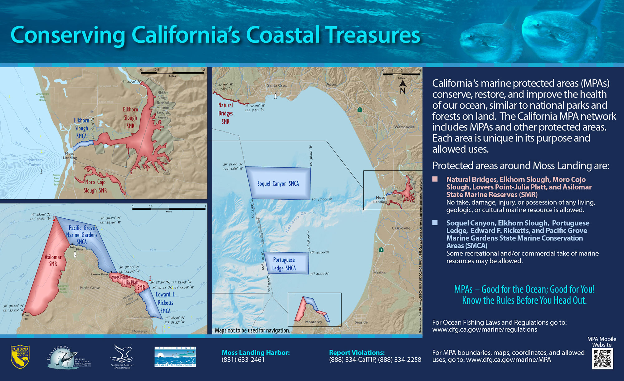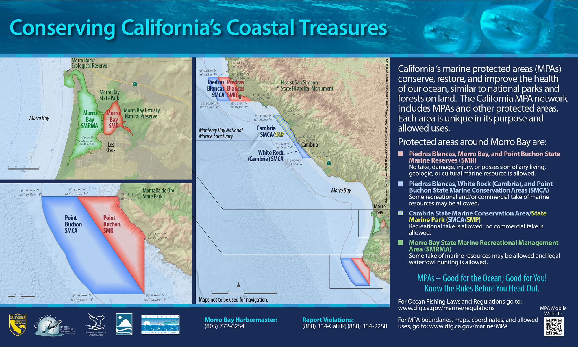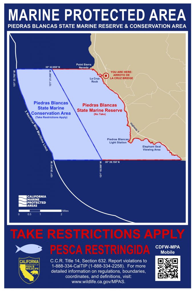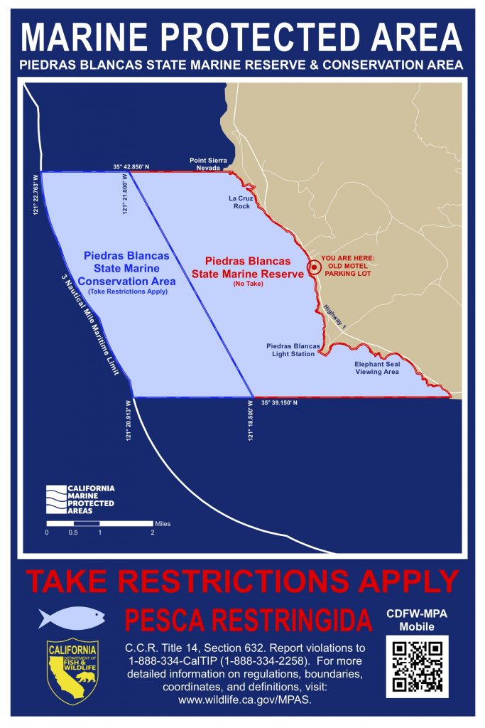 Originally created by Wildcoast, “You are Here” signs are designed to orient visitors to their location in relation to an MPA’s boundaries and to inform them about its take regulations.