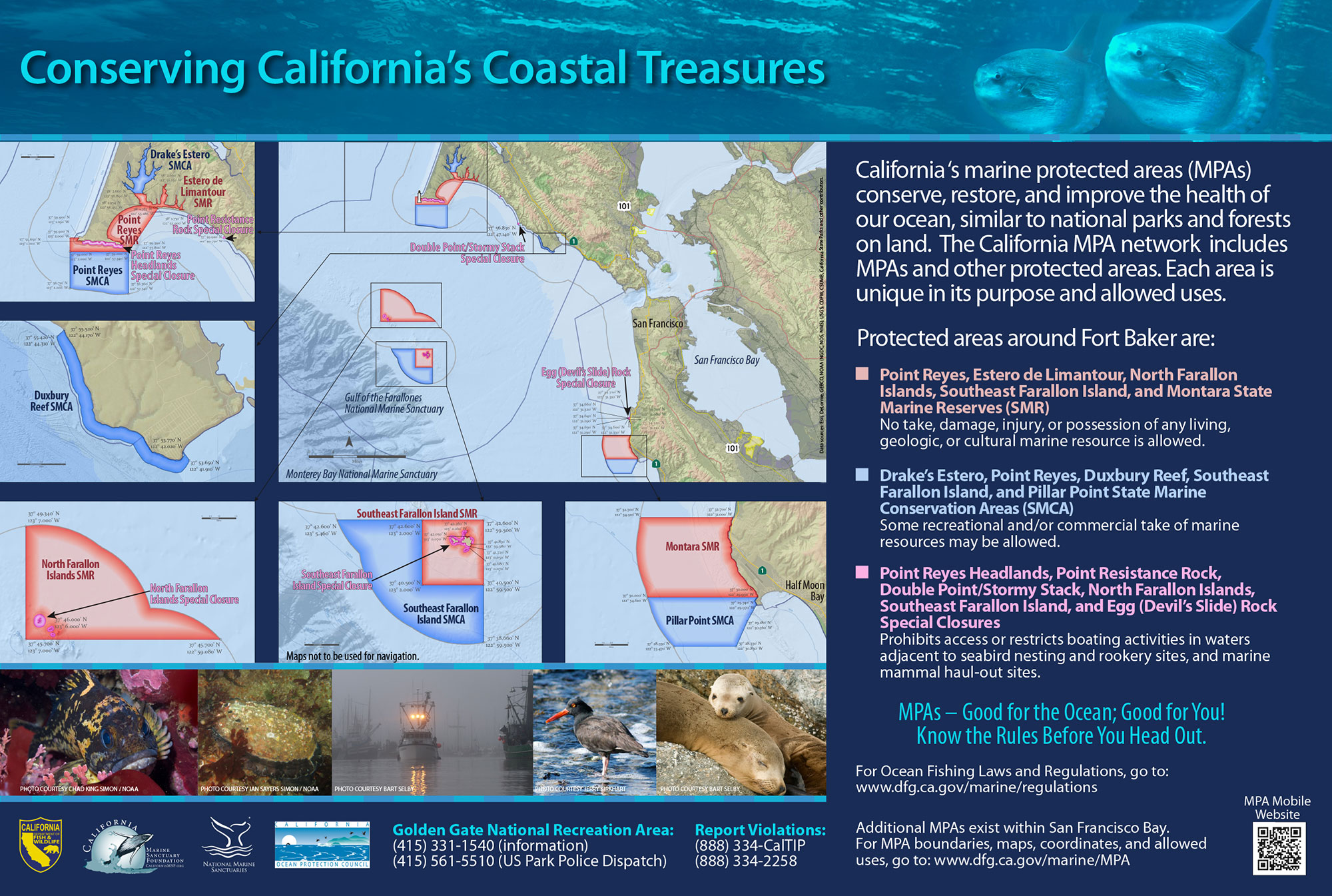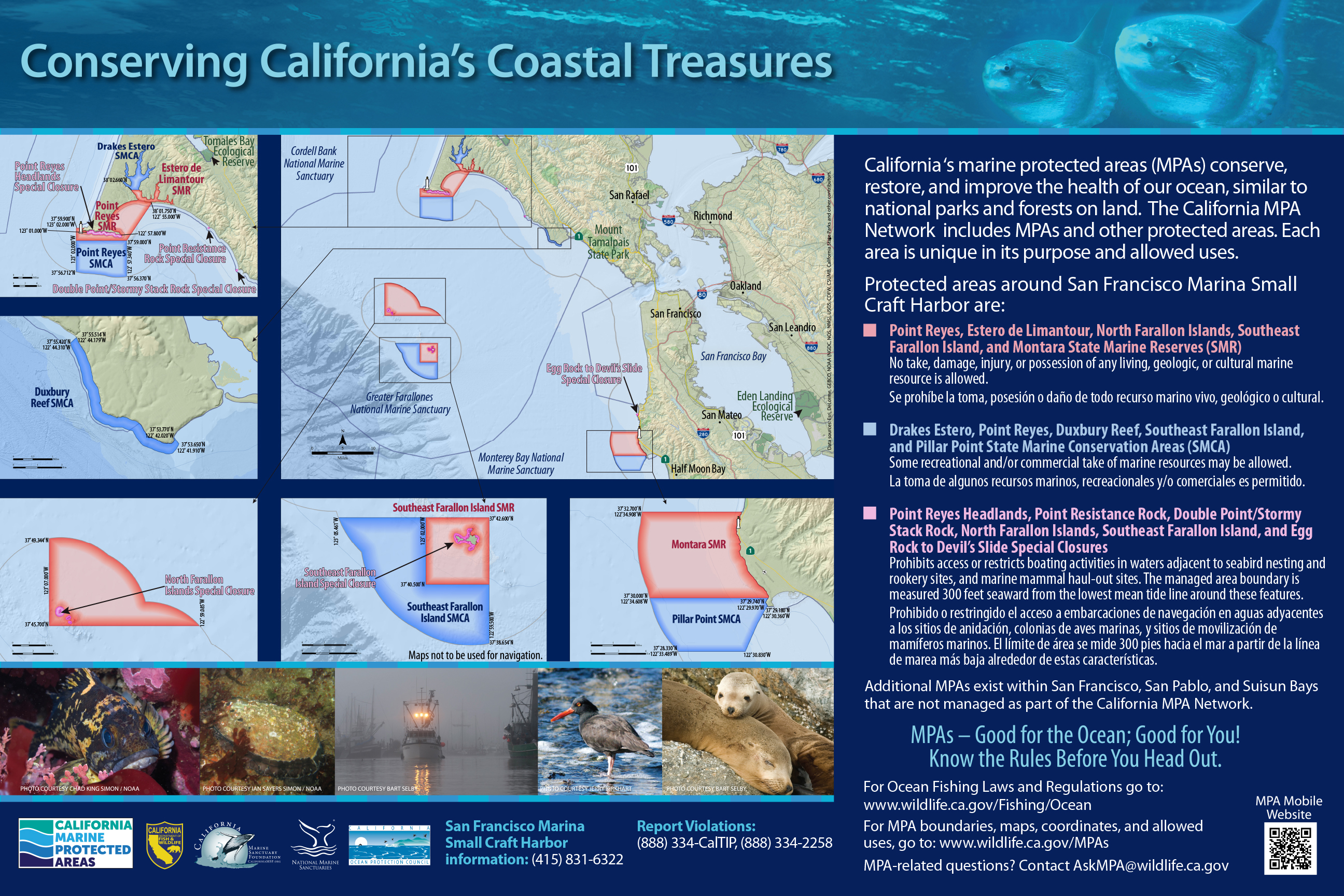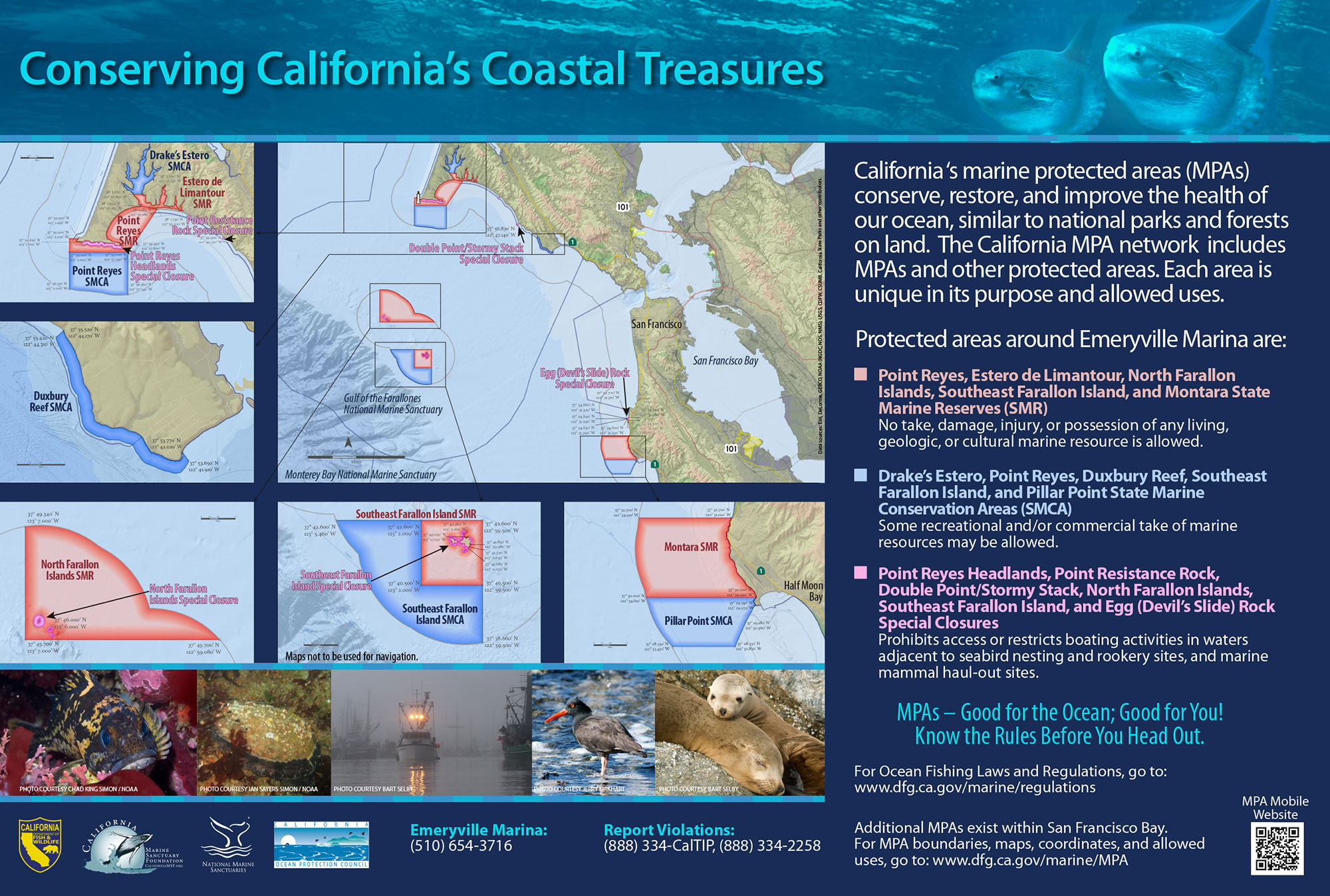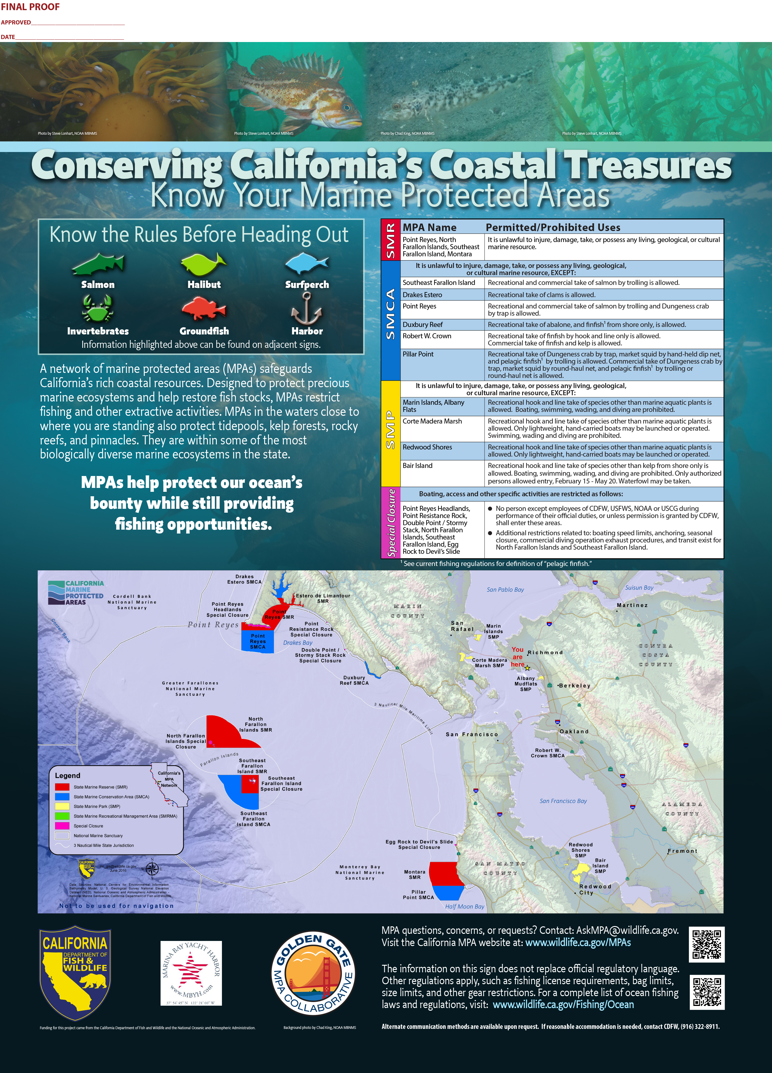 Originally created by Wildcoast, “You are Here” signs are designed to orient visitors to their location in relation to an MPA’s boundaries and to inform them about its take regulations.