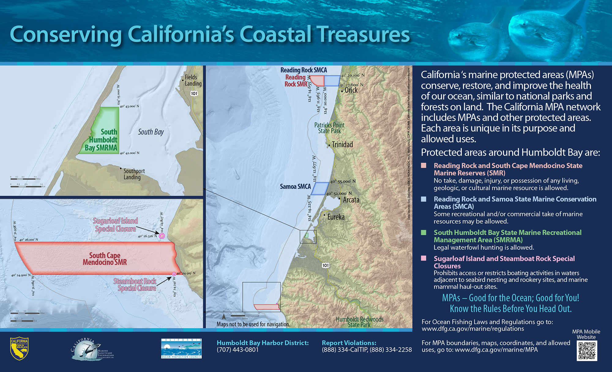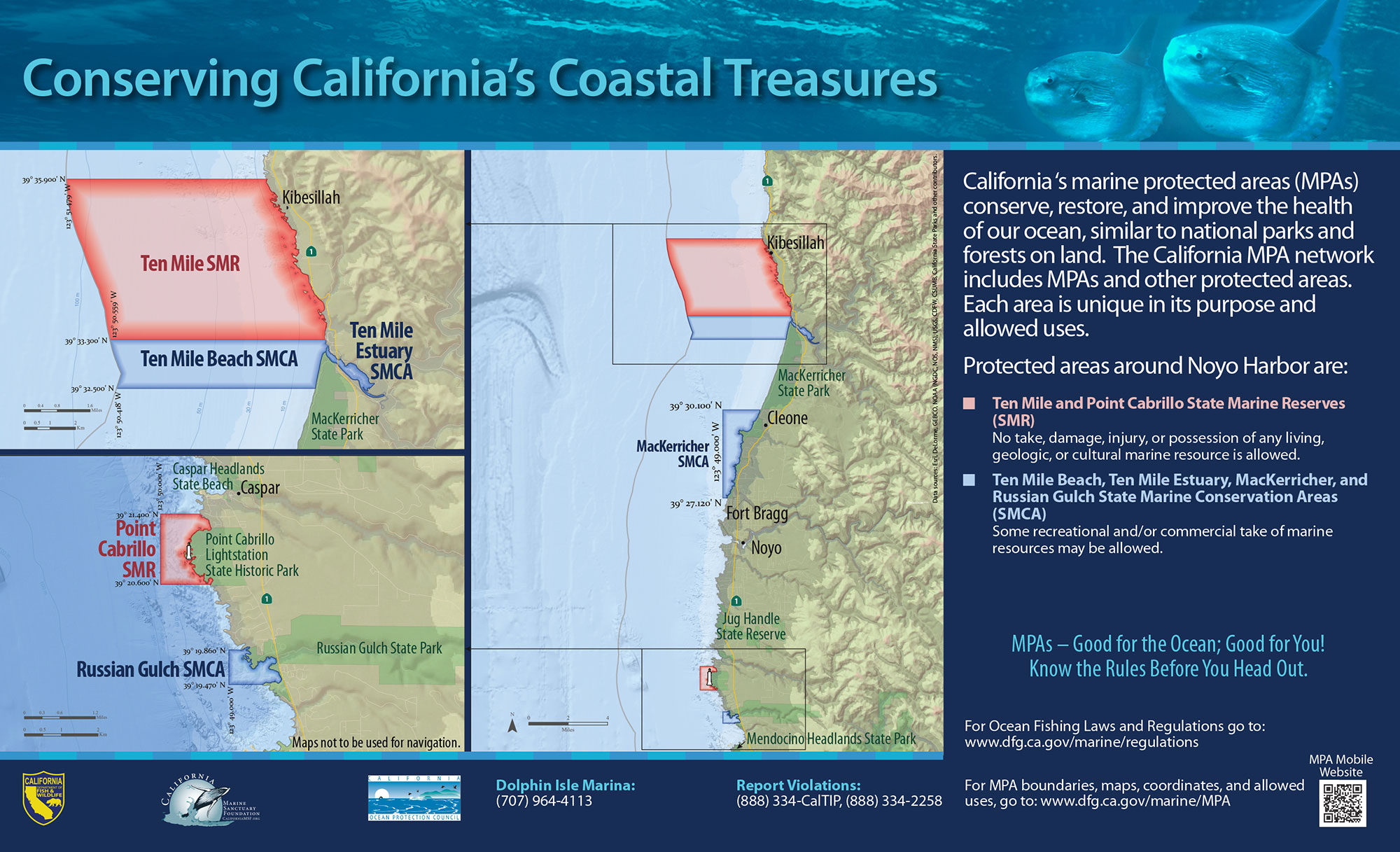 Originally created by Wildcoast, “You are Here” signs are designed to orient visitors to their location in relation to an MPA’s boundaries and to inform them about its take regulations.
