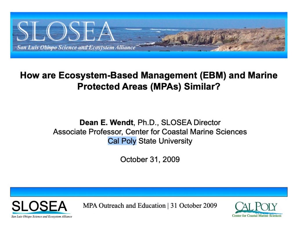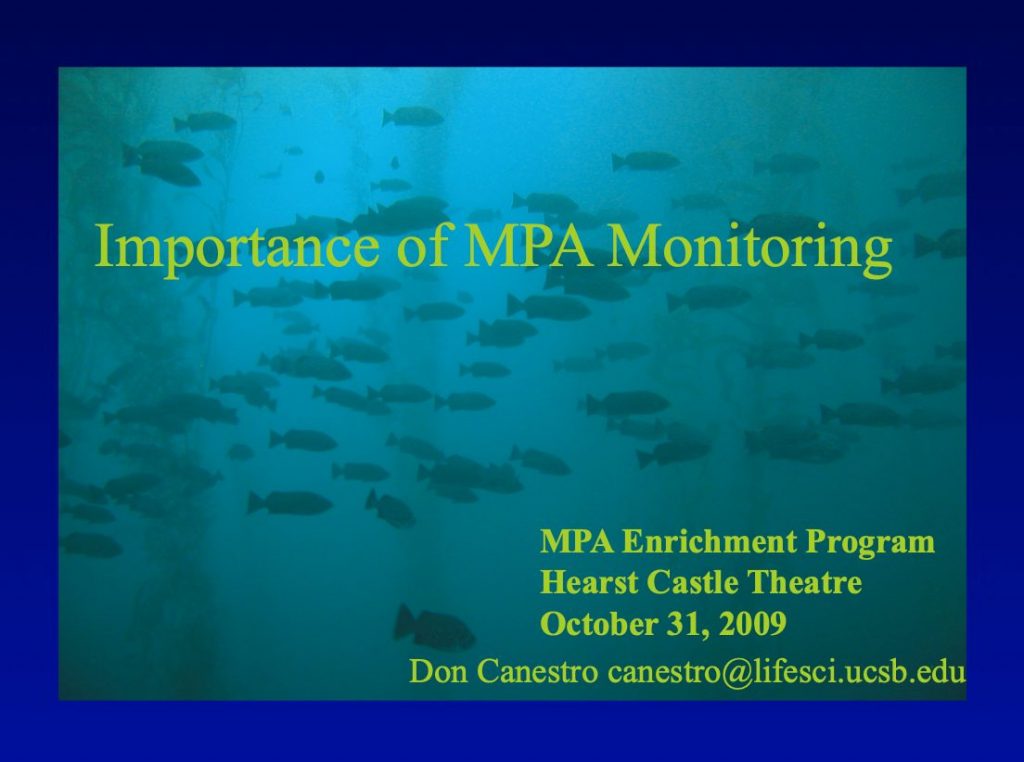 There are many different PowerPoint training resources available for your use! Here you will find county-specific, scripted PowerPoints tailored toward interpretive audiences and anglers, presentations including general MPA and MLPA information, presentations on MPA monitoring and research, and presentations from our partners.