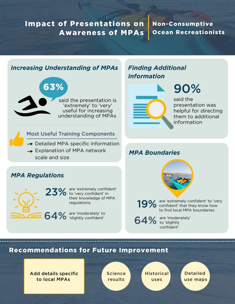 This report, funded by the Ocean Protection Council, highlights the findings and recommendations from research conducted by the California Marine Sanctuary Foundation that assessed the efficacy of select outreach tools for increasing awareness of MPAs among primary coastal user groups.